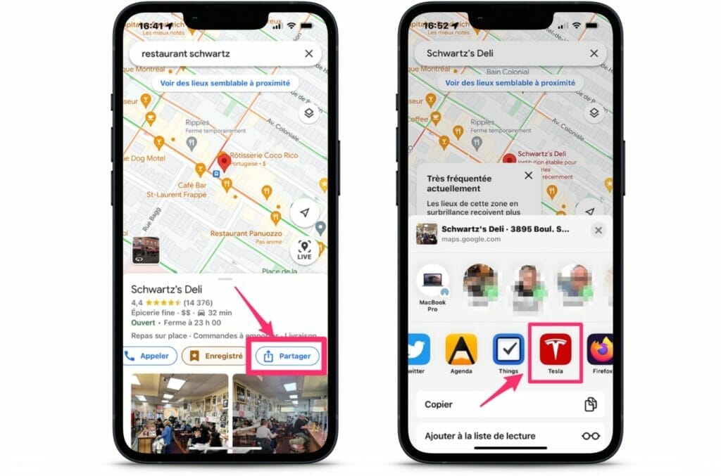 Comment partager une adresse de destination depuis Google Maps pour iPhone vers une Tesla: